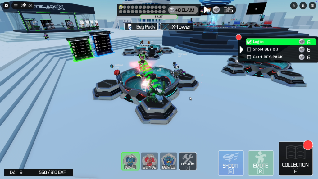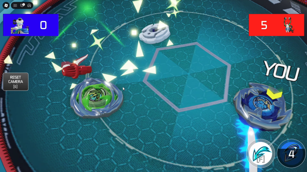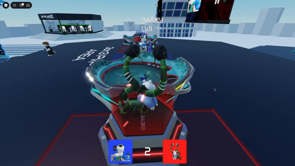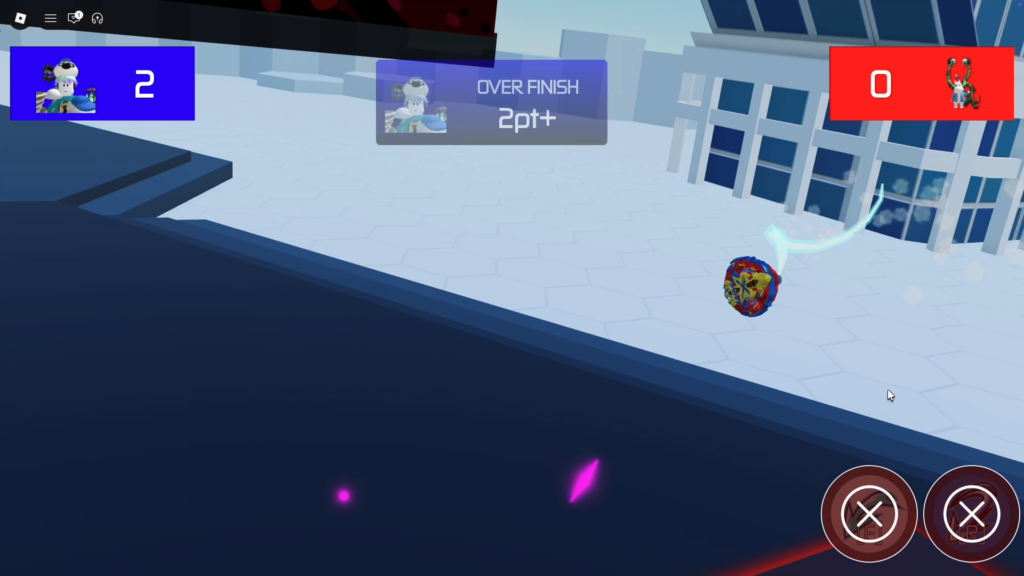 ベイ同士がぶつかる、押し合う、最後まで残る、場外に飛ばす。勝ち負けの流れが直感的なので、Robloxの中でもかなり見やすい対戦ゲームです。