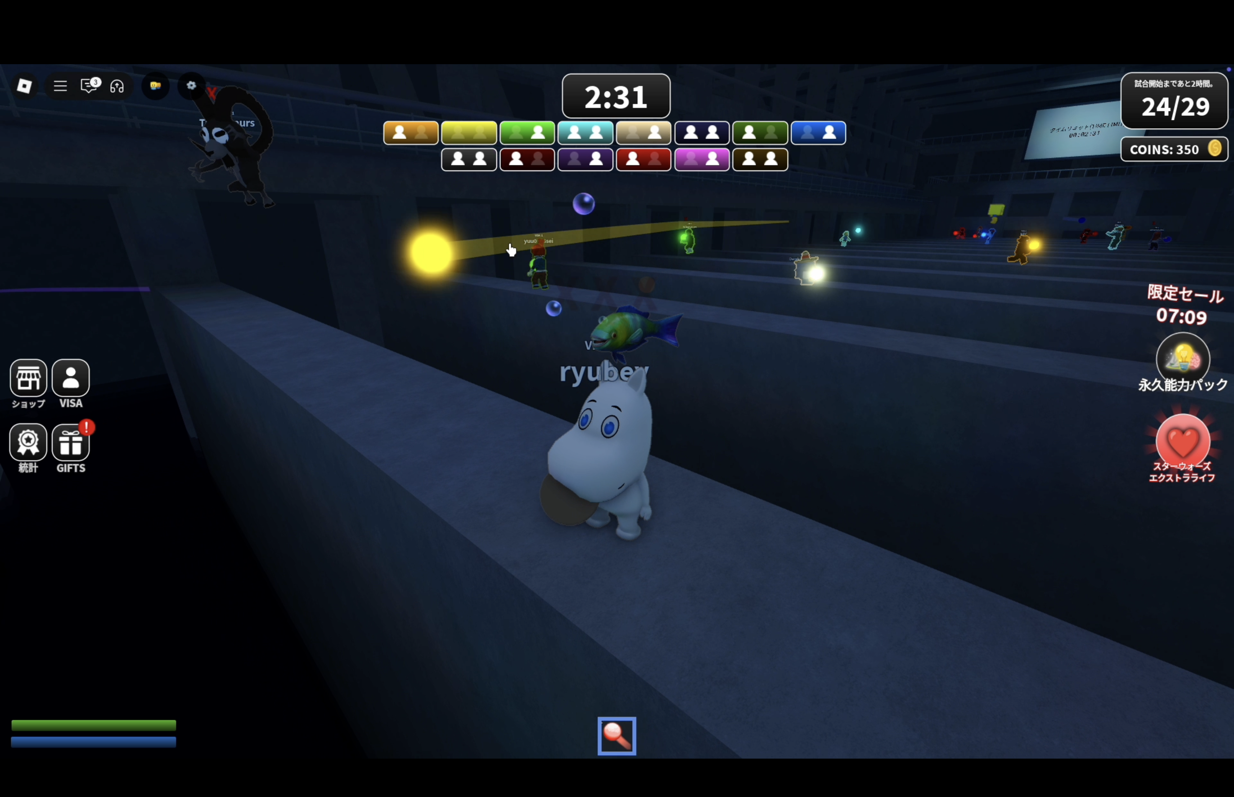 - ロビーで待機 → ラウンド参加:人数が揃うと競技へ移動。