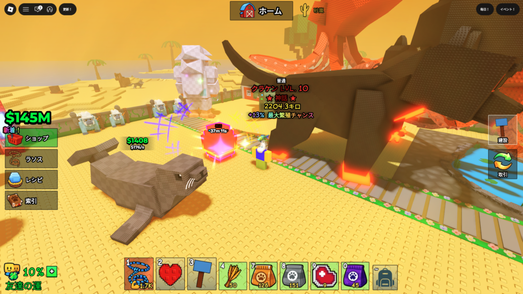 ある一定の動物を獲得してくと、このイベントによるレアな動物やアイテムを入手して、より多様な動物や突然変異系を獲得していくという流れです。