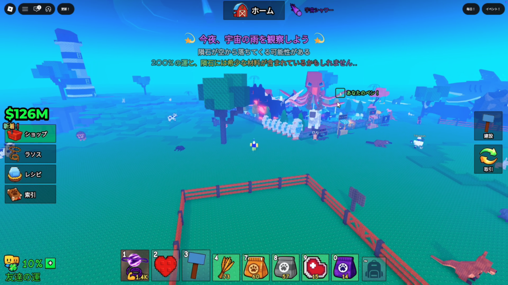 雨イベントや火山やオーロラ、隕石まで落ちてくることがあります。