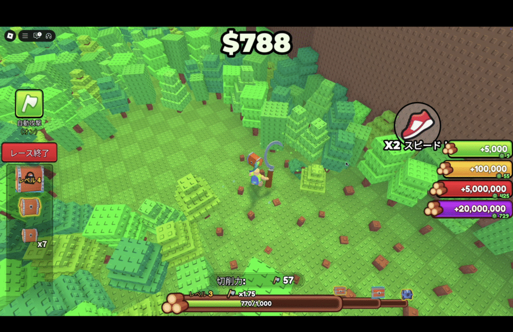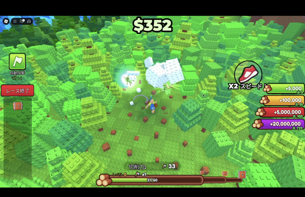 - 近場の木をテンポ良く回す → 強化 → 太い木に挑戦、の小さな周回が効率◎。