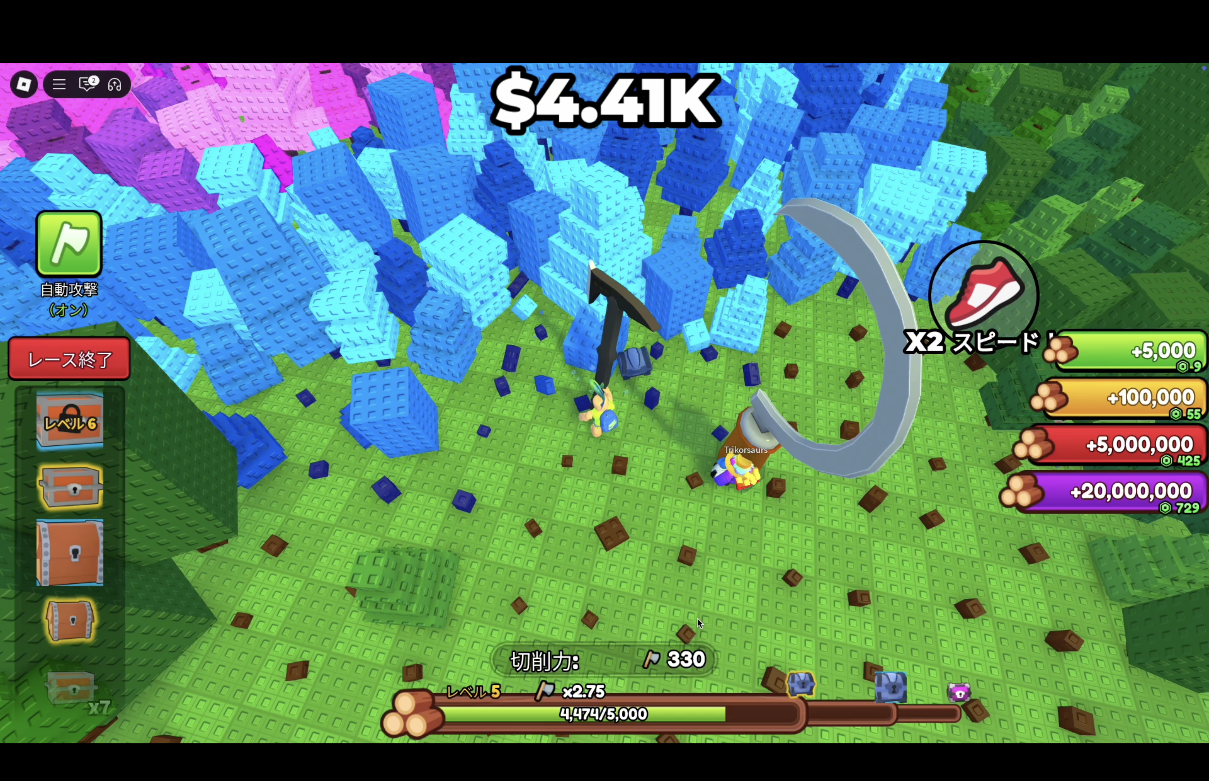 - 斧を替えるたびにサクサク度が爆上がりして成長が実感できる。
