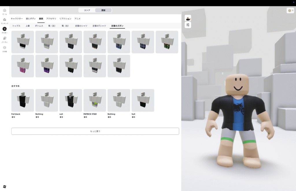 ロブロックスでよく見るタンクトップ+短パンみたいな格好=Default clothing(デフォルト衣装)と呼びます。