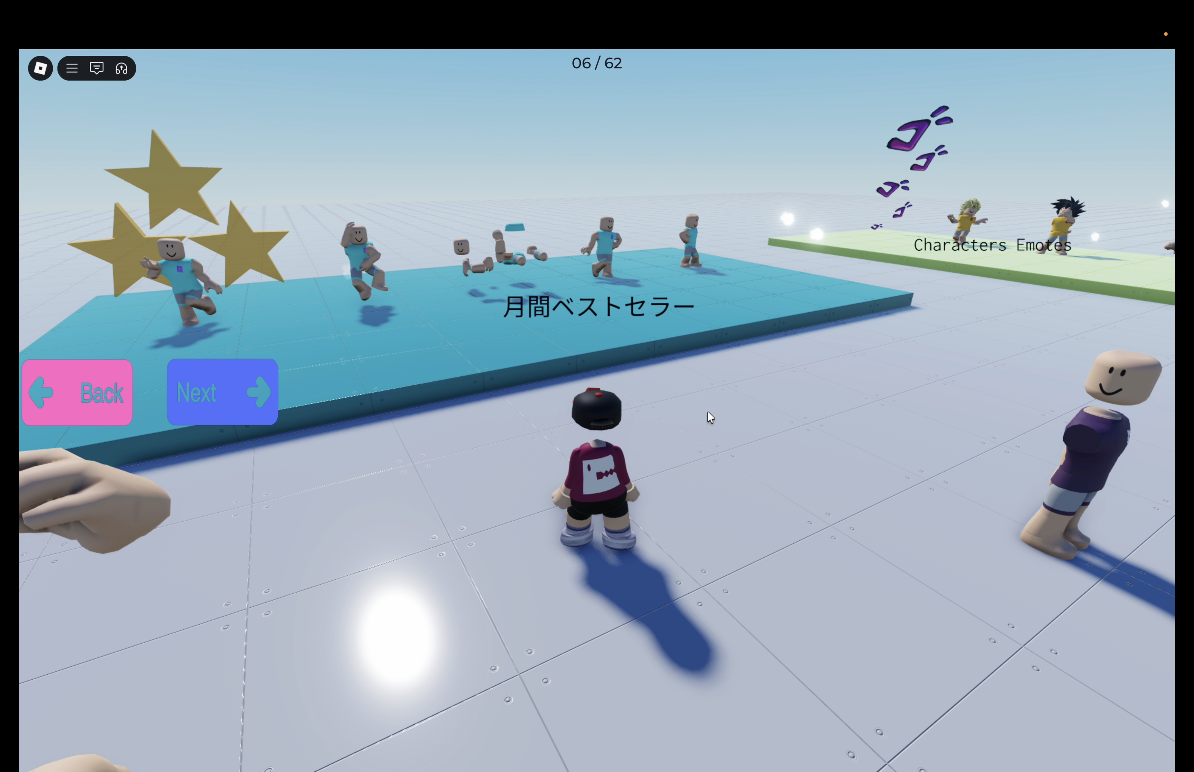 そんな無数の中から厳選して、厳選しても1500ほどあるのですがジャンル別に試して気に入ったら買うことのできるエモートテスト&ショッピングゲームが登場しました。