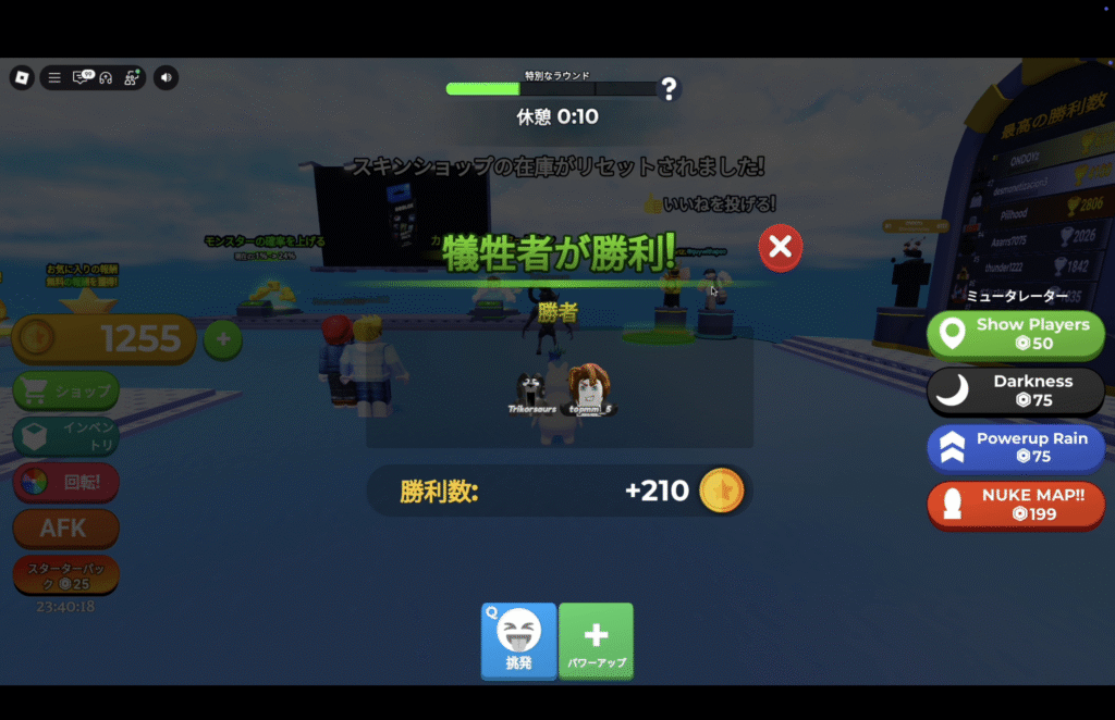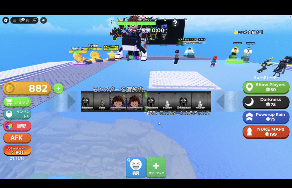 ラウンドごとにプレイヤーの中からランダムで「空飛ぶ怪物」が選ばれます。