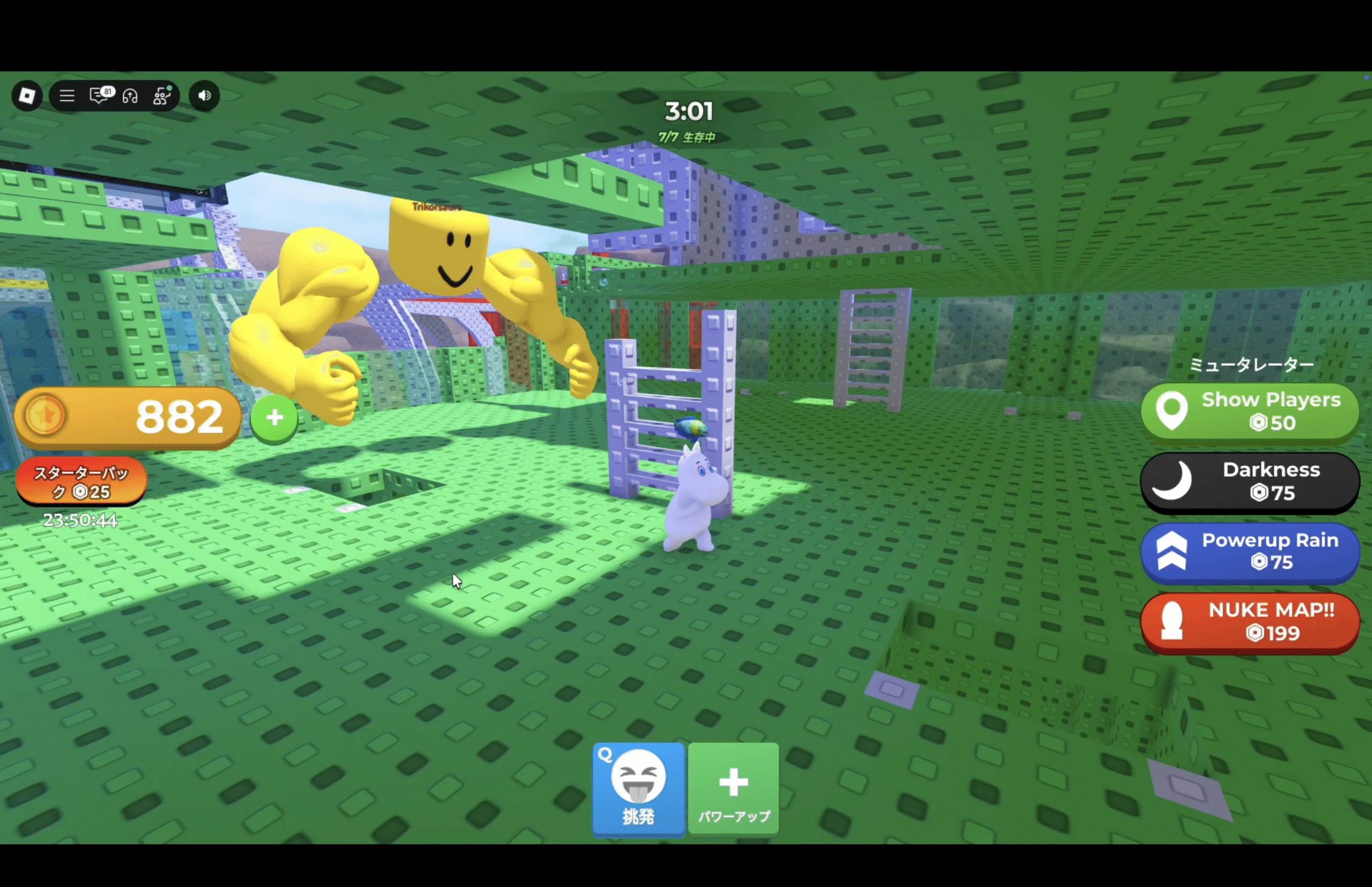 公式のゲーム紹介文も「飛んでくる怪物から逃げろ。やつは拳でマップを破壊していく。どれだけ生き延びられる?」というシンプルかつ直球の内容で、ラウンド型の“かくれんぼ×逃走”のゲームです。