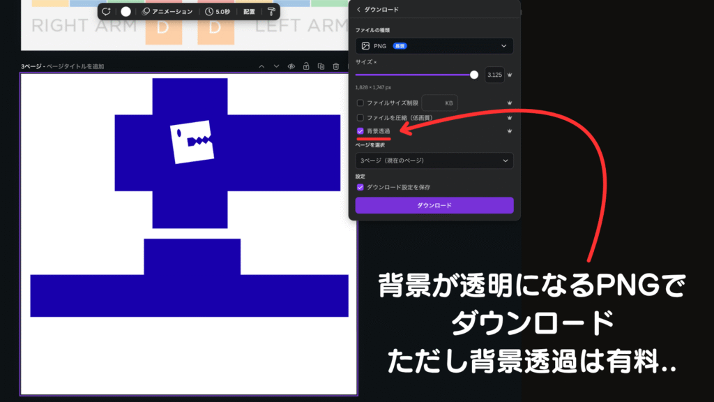 キャンバは無料で作成は可能ですが、DLするのに有料である必要があるかもしれません。
