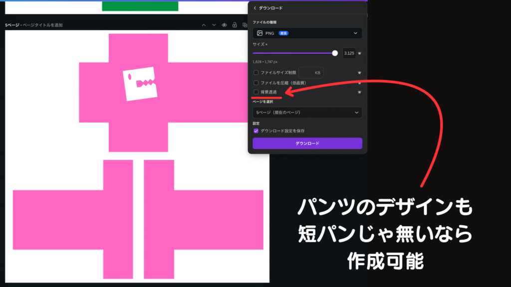完成したデザインをPNGという保存形式でダウンロードします。