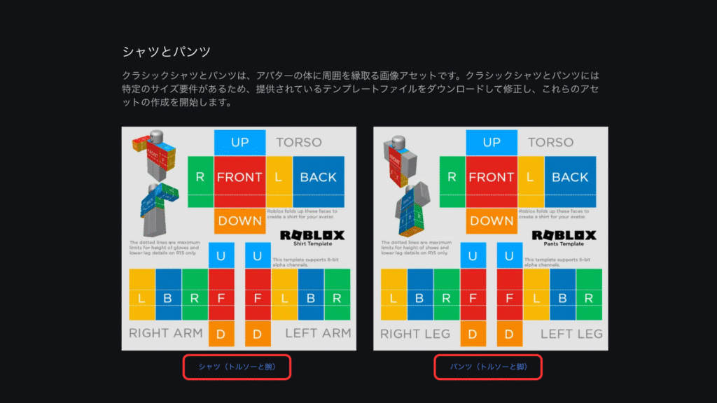 どの場所がどの部位などはテンプレートを参考にするとわかりやすいです。
