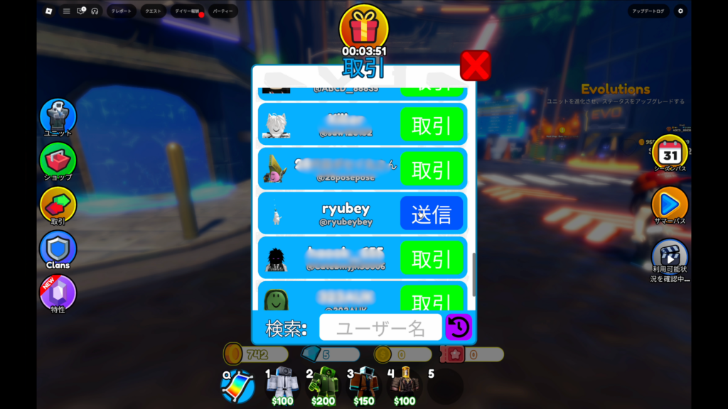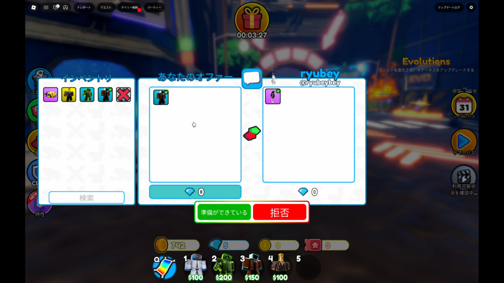 ロビーマップからテレポートすると取引スペースに人だかりが。そこに以下の画像のような向かうと画面が開く。